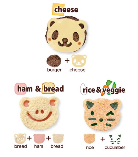 - Complete 6 piece kit for creating Pig, Panda, Cat and Frog shaped food