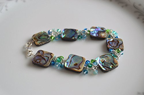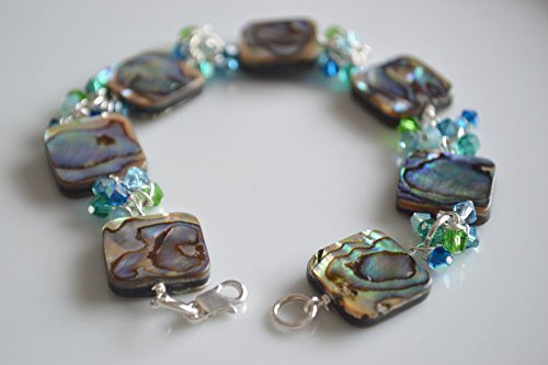 -. Title : Abalone and crystal sterling silver bracelet