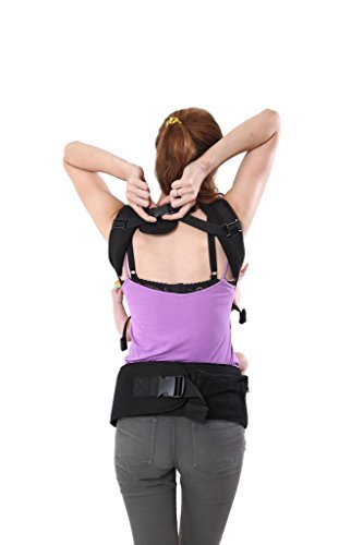 The color of this baby carrier is Black. With wide belt and it is so softly and comfortablely for mother or father. The material of the shell is 100% cotton, the lining of baby carrier is 100% cotton, the webbing of baby carrier is 100% Polypropylene.