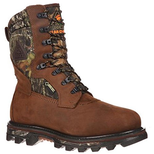 Studio : Rocky Publisher : Rocky Binding : Apparel Product Description Staw warm while you work in these rugged boots from Rocky. Made from a sturdy combination of full-grain leather and Mossy Oak Break-Upcamouflage pattern nylon, these lace-up work boots are ready for the job thanks to top-notch insulation and the BearClaw 3D outsole with RockyROCKY 3D welt construction. With quality features both inside and outsoide of these Rocky work boots, you'll be able to trek through frigid areas with confidence and comfort. 0