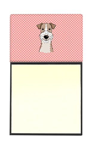 Caroline's Treasures Checkerboard Pink Wire Haired Fox Terrier Refillable Sticky Note Holder or Postit Note Dispenser, 3.25 by 5.5", Multicolor