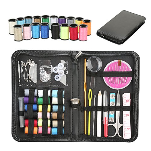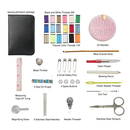 - PREMIUM ACCESSORIES: We have handpicked the most exceptional sewing supplies to help you complete every project. The package includes stainless steel scissors, 18 sewing thread spools in popular colors, A Measuring Tape, Thimble, Pins, threaders, pins, 4 shirt buttons, seam ripper, Needles.