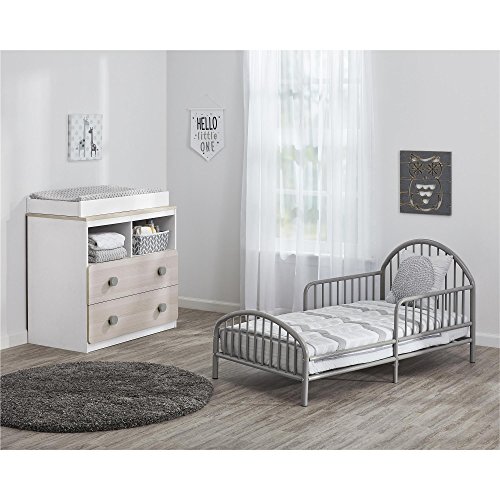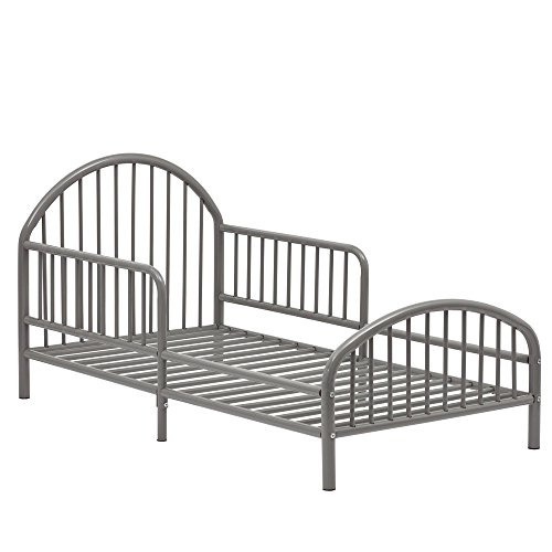 ReleaseDate : 2017-10-30 Studio : Dorel - Multiple - Parent - DROPSHIP Publisher : Dorel - Multiple - Parent - DROPSHIP Binding : Baby Product Product Description Transition your child who has outgrown a crib to this modern Novogratz Prism Metal Toddler Bed. This bed is the perfect height for your toddler to climb in and out of and has nice rounded corners as an added safety feature. The fixed, slatted side rails provide added security while your toddler is in the bed. You can also have peace of mind knowing the finish has been tested for lead and other toxic elements to meet or exceed U.S. government and ASTM safety standards. The painted light gray finish adds a subtle pop of color to your child's room. Toddler bed fits a standard sized crib mattress. Crib mattress sold separately - no box spring needed. This sturdy metal Toddler Bed measures to be 27"H x 29.4"W x 54.4"D and is recommended to be assembled and moved by 2 adults. 0