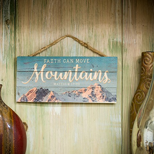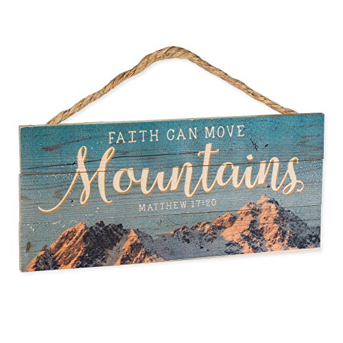 Faith Can Move Mountains 5 x 10 Wood Plank Design Hanging Sign