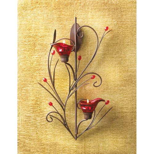 - Feature : Art Deco sconce made from Iron, glass and acrylic / Floral design in the form of ruby blossoms / Fabulous wall accent for any decor / Holds two tealight candles (not included) / Excellent gift idea for housewarmings