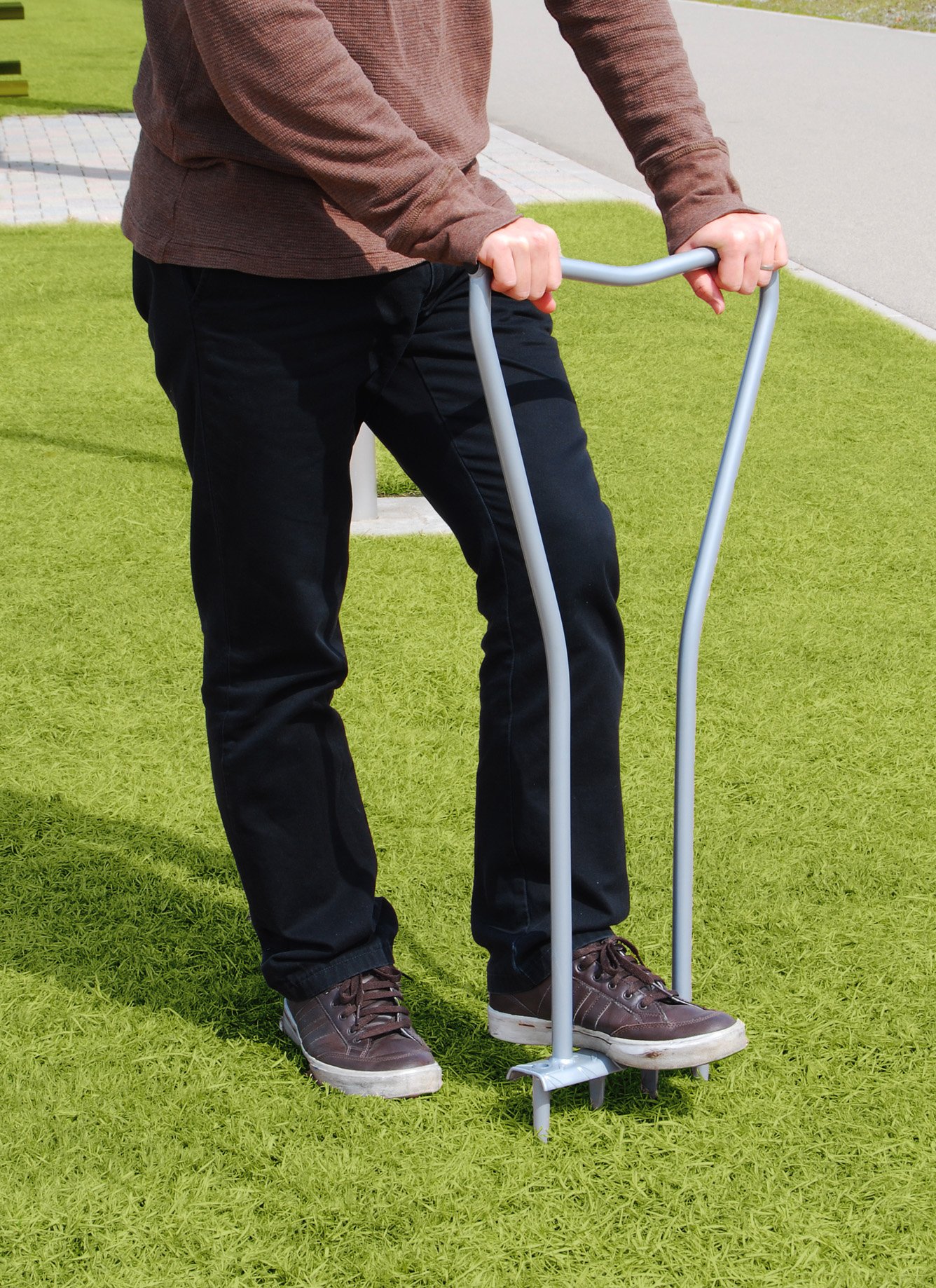 Drilling a hole in a compacted lawn and cutting old roots, water and oxygen are sent deep into the ground and the breathability improves and the lawn activates!