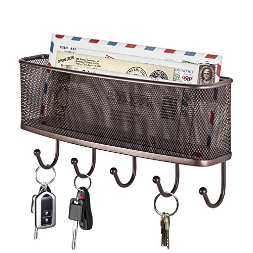 DESIGNA Its-Organized Mail Holder with Key Rack for Home & Office, Bronze-Wall Mount (Size: 10.63" x 2.64" x 5.2")
