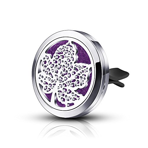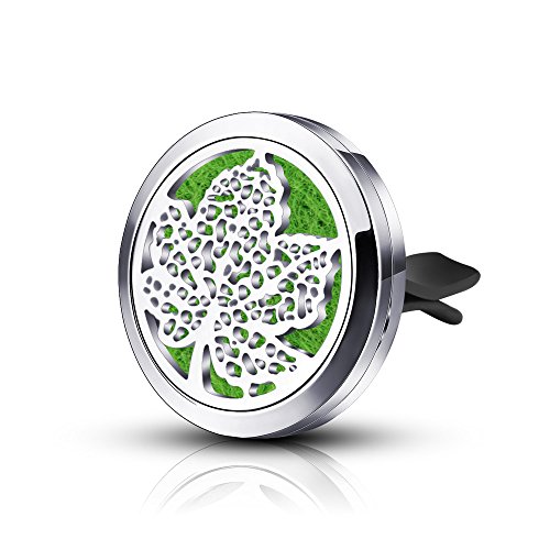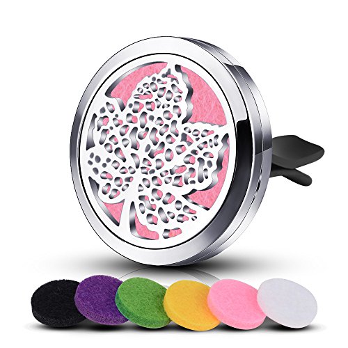Aromatherapy Essential Oil Car Diffuser with Vent Clip Mini Protable Air Freshener Stainless Steel Maple Leaf Fragrance Locket & 6PCS Multi-Colored Felt Pads for Office Home Travel Vehicle