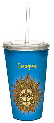 Tree-Free Greetings 35543 Valentina Ramos Imagine Sun Double-Walled Cool Cup with Reusable Straw, 16-Ounce