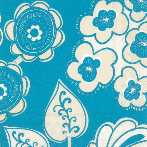 Ideal Home Range 20 Count Boston International 3-Ply Paper Cocktail Napkins, Blue Downtown Garden Print