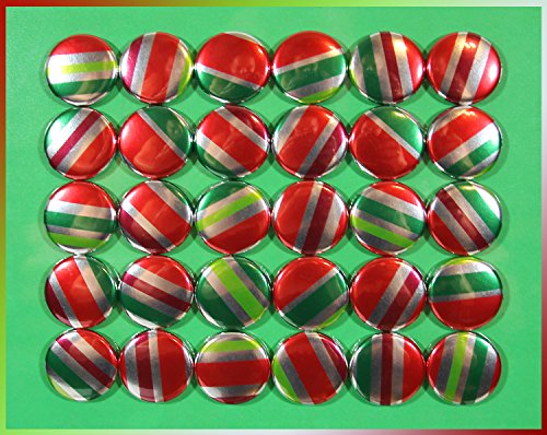 30 Christmas Magnets. 1" Mini Metallic Refrigerator Decorations. Shiny Holiday Decor Set. Party Favors. Secret Santa. Christmas Stocking Stuffers. Foil Stripes. (MV001a)