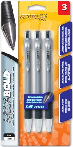 -. Title : Promarx MegaBold Retractable Ballpoint Pen with Comfort Grip, 1.6 mm, Black, 3 Count