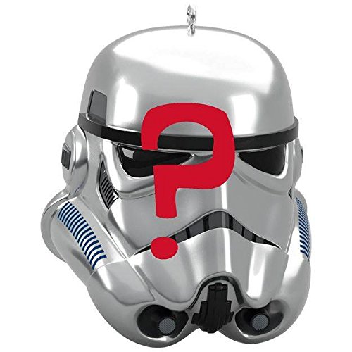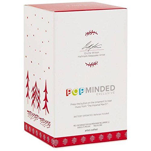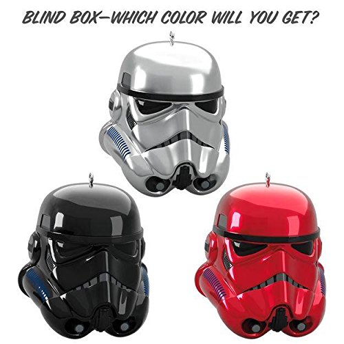 Studio : Hallmark Publisher : Hallmark Binding : Kitchen Product Description Searching for a Christmas ornament that sounds as cool as it looks? This is the ornament you're looking for! Designed after the classic Stormtrooper helmet, this Hallmark PopMinded exclusive plays The Imperial March at the push of a button. The mystery is which color helmet will you receive-each ornament comes "blind" packaged in a sealed box so it's a surprise! You'll have to wait until you open the box to find out if it's the metallic silver, metallic red or metallic black version. Collect all 3! Battery-operated music feature includes two replaceable LR44 batteries. 0