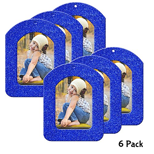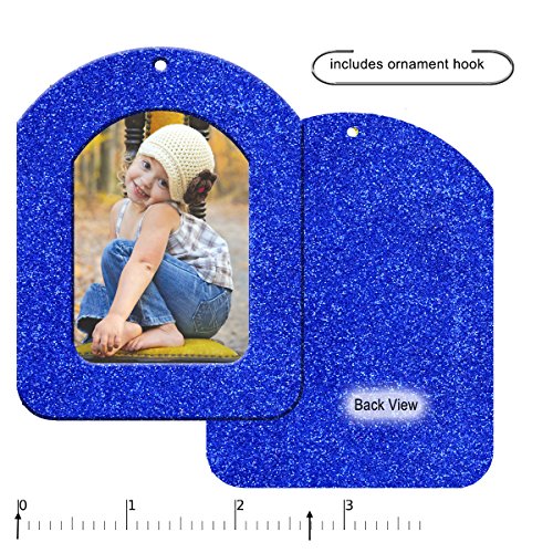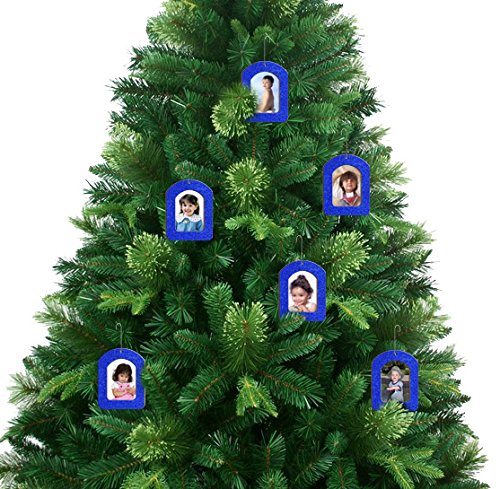 Mini Magnetic Glitter Christmas Photo Ornaments - 6-pack, Vertical - Blue