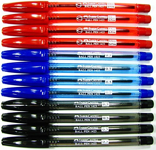 -. Title : NEW FABER-CASTELL 12 PENS BLUE / BLACK / RED INK BARREL 1423 BALL POINT PEN 0.5