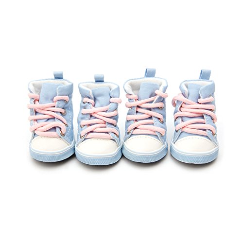 -. Feature : Material: Denim & Rubber Sole / Style: Causal Sports Sneaker Shoes / Feature: Lace up / Casual sneakers, fasten with shoe lace / Keep your dog's paws clean, comfortable and well protected