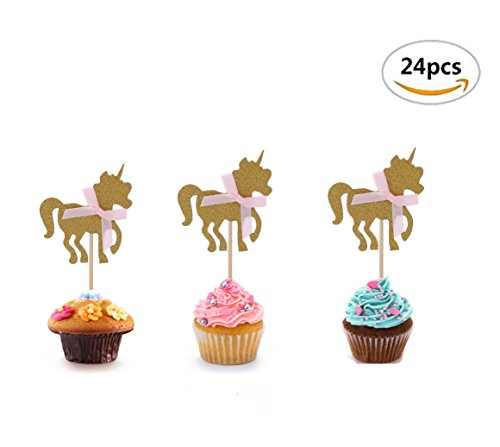 (Maydolbone)/Stationery Party Supplies/Party Supplies/DIRECT FROM USA/Maydolbone 24pcs Golden Unicorn Cupcake Toppers,Food Picks Baby Shower Decor And Cupcake Party Pick