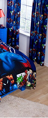 -. Binding : Kitchen -. Brand : Jay Franco -. Color : Blue -. Feature : Includes 2 Window Panels with 2 Tie-Backs, Each panel measures 42 by 84 inches / This pair of window drapes will complete the Amazing Spiderman bedding collection / Has a solid blue ground with illustrations of Spiderman spinning his webs. / Sewn from 60 percent cotton, 40 percent polyester with 180 thread count / Machine washable for easy care -. IsAdultProduct : 0 -. IsAutographed : 0 -. Label : Jay Franco -. Manufacturer : Jay Franco -. PackageQuantity : 2 -. ProductGroup : Home -. ProductTypeName : HOME -. Publisher : Jay Franco -. Studio : Jay Franco -. Title : Amazing Spider-man Drapes - 2 Panels each 42" X 84" Window Treatment