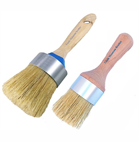 Chalk Mountain Brushes - 2 Pack Boar Hair Bristle Large Paint & Large Wax or Stenciling Brush Kit
