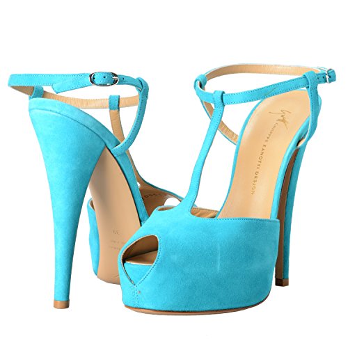 (Giuseppe Zanotti)/Women's/Sandals/DIRECT FROM USA/Giuseppe Zanotti Design Women's Suede Aqua Blue Open Toe High Heels Shoes