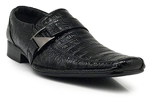Product Description Fashion, Stylish and Comfortable men's crocodile print dress shoes with buckle. Cushion Insole, Non-Skid Out-sole, Slip on, Dual Elastic Side Gores, Metal Vamp Accent. Ideal for casual and dressy. 0