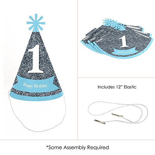 -. Feature : 1st Birthday Boy Party Hats INCLUDES 8 cone-shaped Fun to be One party hats for adults with decorative top and elastic chin straps. 1st Birthday Boy party hats are a larger size but will fit both children and adults. / 1st Birthday Boy hats SIZE 8.5 inches tall and 5.5 inches in diameter at the base. The included elastic chin straps measure 12 inches long. Each of these fun blue and silver party hats feature a unique star cut-out decoration at the top and P.R.Inted "Happy Birthday" on the front. / FUN BIRTHDAY PARTY SUPPLIES: 1st Birthday Boy cone party hats are perfect for your boy first birthday party. This set of cute party hats will help you take memorable party photos. They are sure to be enjoyed by all your friends and family - and the guest of honor! / PREMIUM PARTY HATS: Set of 8 1st Birthday Boy party hats are professionally P.R.Inted on heavy-duty cardstock paper with a photo-like shine. They are individually inspected, then carefully packaged. 1st Birthday Boy cone party hats will arrive flat, with the chin straps attached. Easy assembly is required. Simply roll the party hat into a cone shape and slide the tab into the slot to secure. / MADE IN THE USA: 1st Birthday Boy - Fun To Be One - Cone Happy First Birthday Party Hats are designed and manufactured at our Wisconsin facility using materials that are Made in the USA. 1st Birthday Boy Cone Party Hats use a No-Mess Glitter P.R.Int: Our cone party hats are designed with a P.R.Inted image of glitter, eliminating glitter flake while maximizing bling effect!