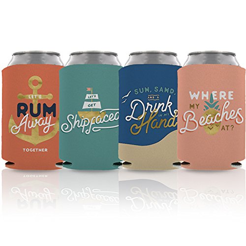 Beach Boating Can Coolers 4-Pack (One of Each Design 4-Pack)