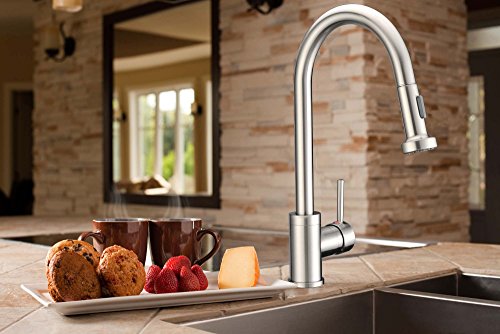 Lenova K470BN Apogee Side Lever Flexible Pull Down Kitchen Faucet with Spray/Stream, Brushed Nickel