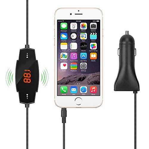This wireless fm transmitter is the ultimate car companion; Compatible with Apple iPod Android iOS Phones and Tablet PCs, MP3/MP4 audio players with a 3.5mm headphone jack