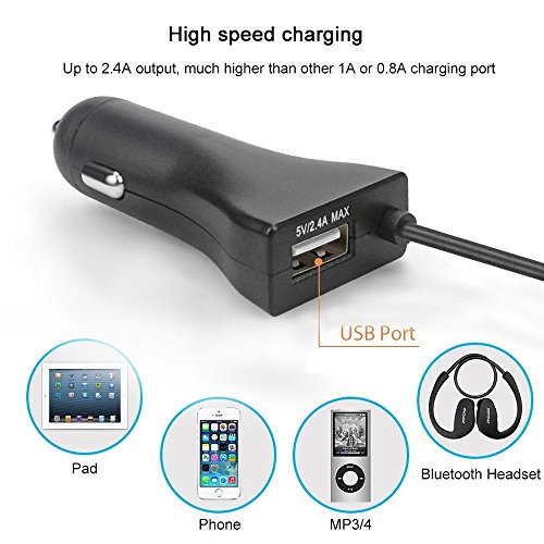 Comes with an extra USB port (Output 5V/2.4A) to charge your cell phones, GPS and other digital devices while driving. Also can support 9-24V voltage from the car cigarette lighter adapter socket plug