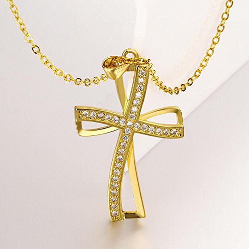 -. Title : Fashion Jewelry Cross Pendant Necklace Cubic Zirconia Eelegance Girl Gold Plated
