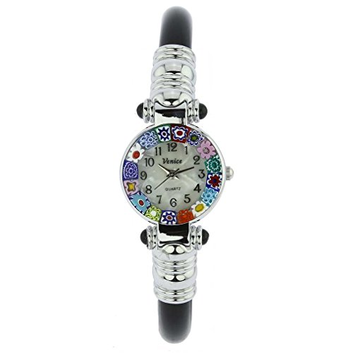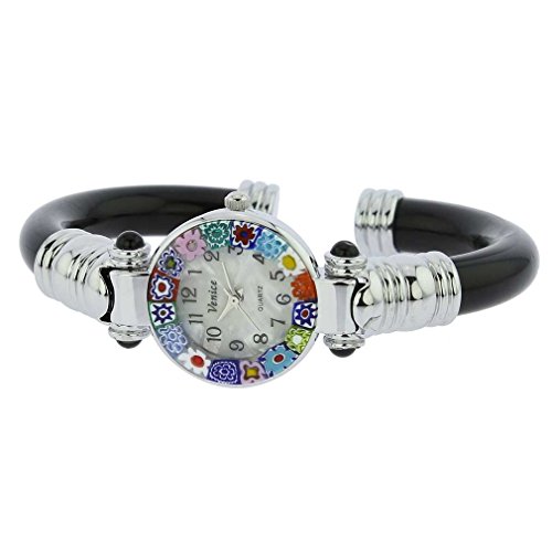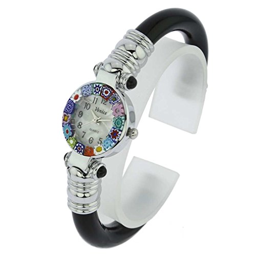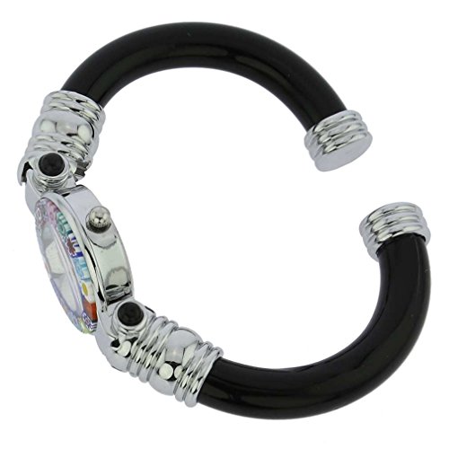 GlassOfVenice Murano Glass Millefiori Bangle Watch - Silver Black Multicolor
