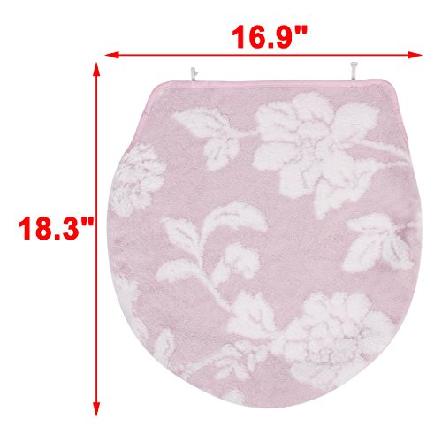 uxcell Bathroom Washable U Shaped Flower Pattern Toilet Lid Rug Cover Pads Pink