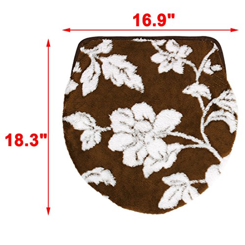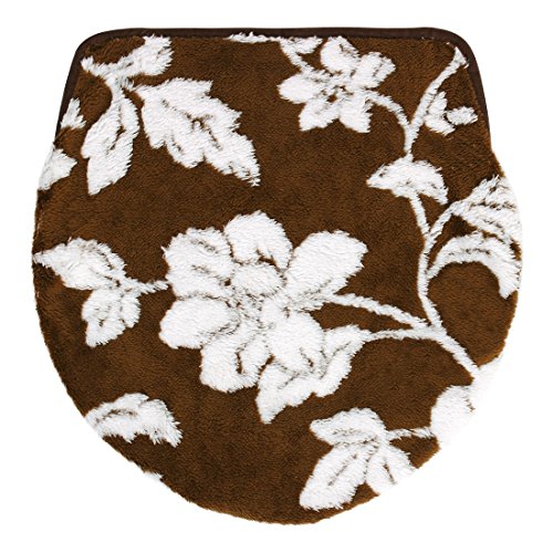 uxcell Bathroom Washable U Shaped Flower Pattern Toilet Lid Rug Cover Pads Coffee Color