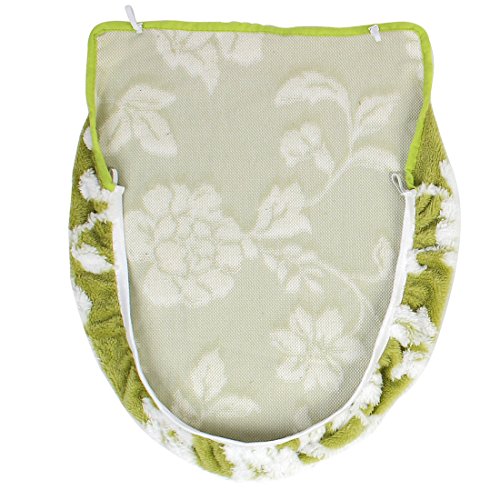 uxcell Bathroom Washable U Shaped Flower Pattern Toilet Lid Rug Cover Pads Green