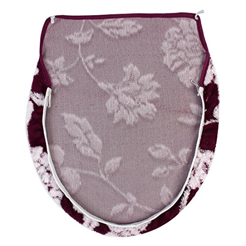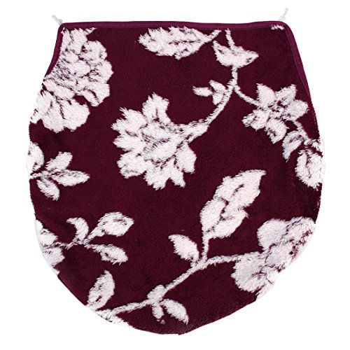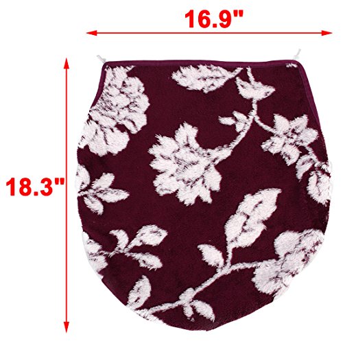 uxcell Bathroom Washable U Shaped Flower Pattern Toilet Lid Rug Cover Pads Burgundy
