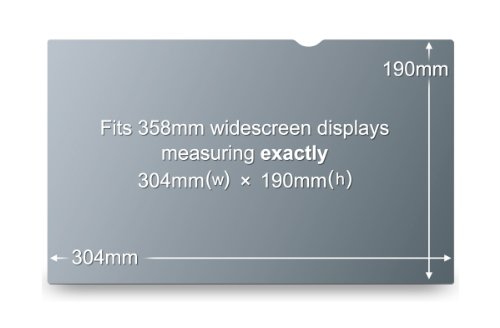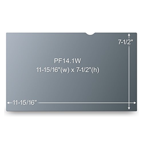 - Feature : Keeps private info private, prying eyes see only a dark screen when viewed from the side but user sees clearly--no blurring or image distortion / Designed to fit widescreen laptops with a diagonally measured 14 1/16" viewing screen and a 16:10 aspect ratio / Actual filter dimensions are 11 15/16" wide x 7 1/2" high (304 mm x 190 mm). / Lightweight, thin, frameless design. Protects display from dirt, debris and scratches. Cleans easily with a soft cloth and water / You'll see the information on your display while people on either side only see a darkened screen. / Filter is reversible. Choose matte side for anti-glare or glossy side for increased clarity. / Limited one year warranty. Made in USA