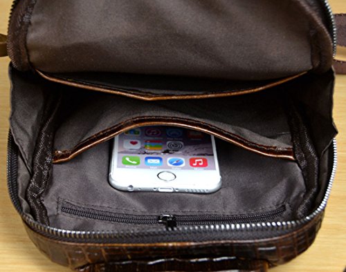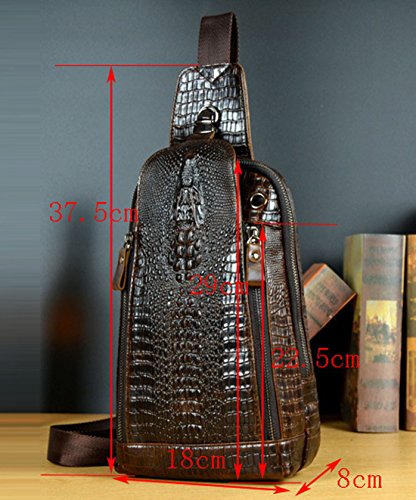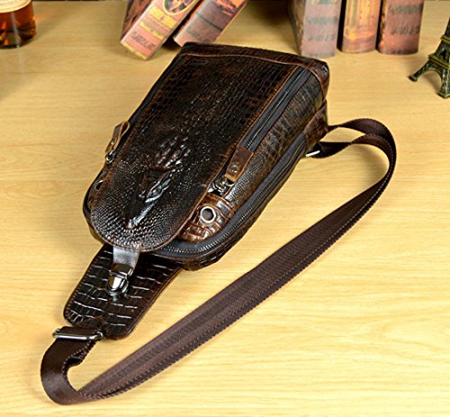 -. Title : Men Geunine Leather Crocodile Grain Shoulder Messenger Sling Day Pack Chest Bag