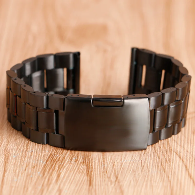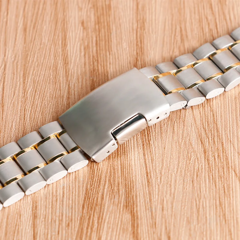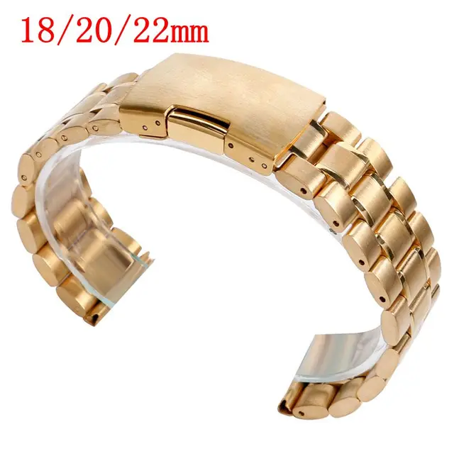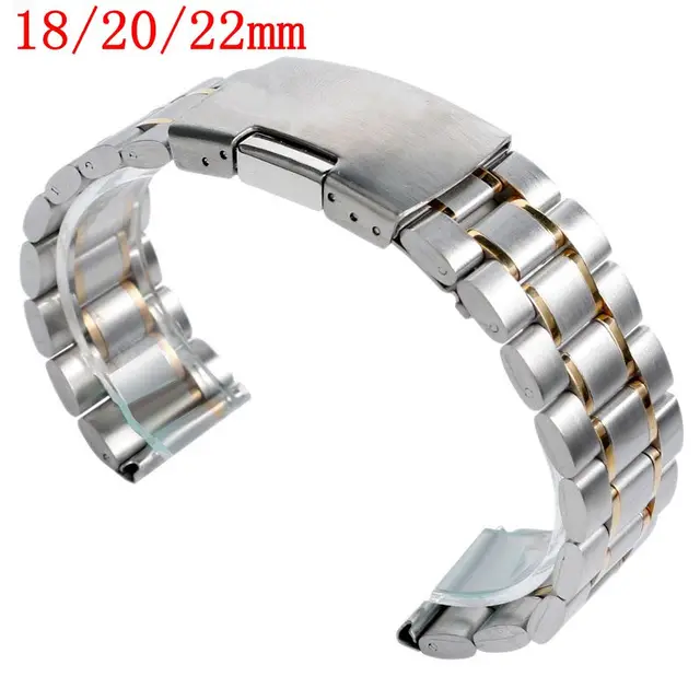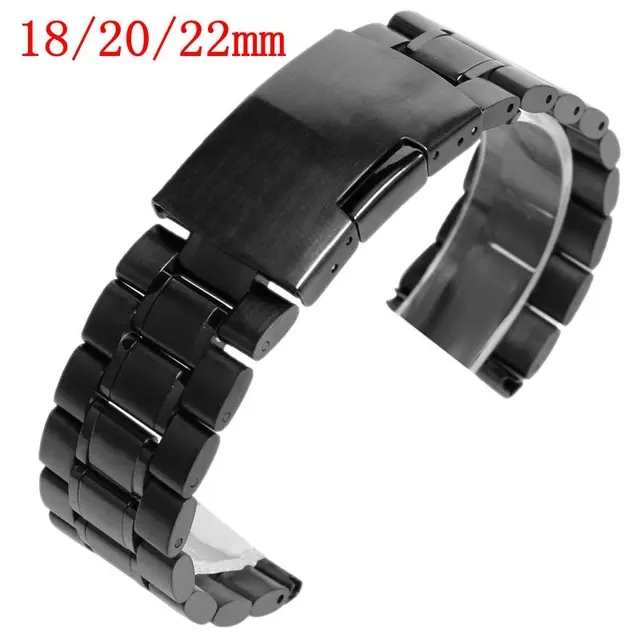 | [해외]18/20/22 미리메터 솔리드 링크 실버/블랙/골드 배 버클 팔찌 스테인레스 스틸 손목 밴드 시계 스트랩 남성 교체 높은 품질 |