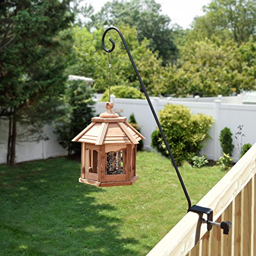 - PREMIUM QUALITY: Rust resistant, heavy duty steel construction. Weather proof black powder coated cast iron. Bring your heaviest feeders and planters! A dark finish stunningly complements anything that hangs from it, adding elegance and beauty to your outdoor living space. Solid bracket and curved rod tip helps securely hold items.