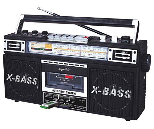-. Title : SuperSonic Retro 4 Band Radio and Cassette Player, Black