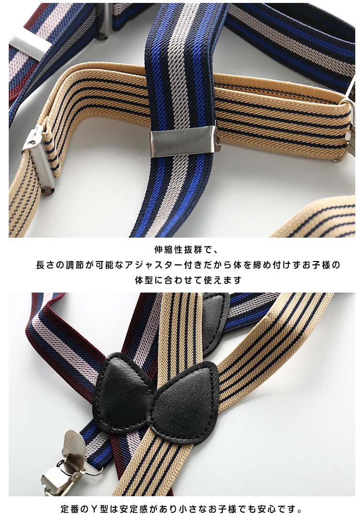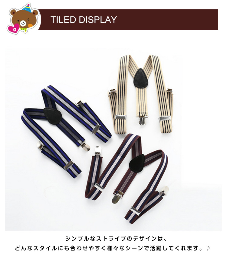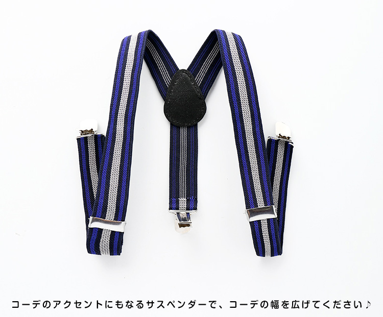 | カジュアルにもフォーマルにも使えるマストアイテム♪ シンプルなストライプのデザインは、どんなスタイルにも合わせやすく様々なシーンで活躍してくれます。♪ コーデのアクセントにもなるサスペンダーで、コーデの幅を広げてください♪ | |