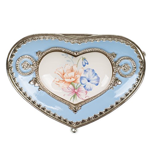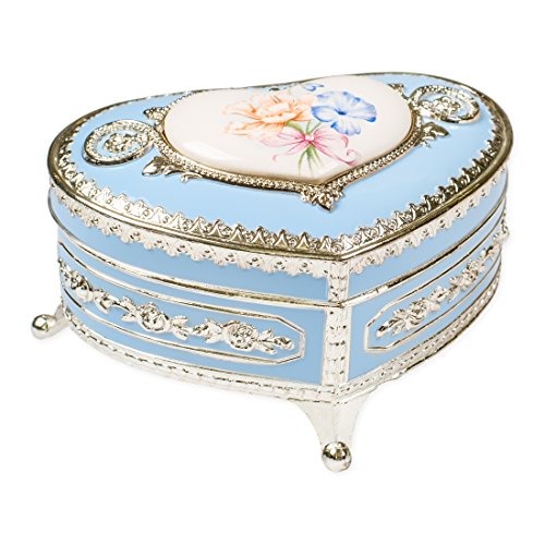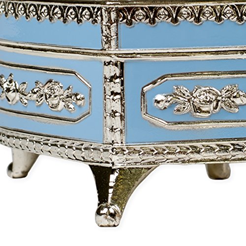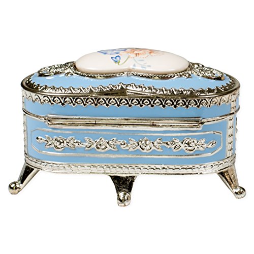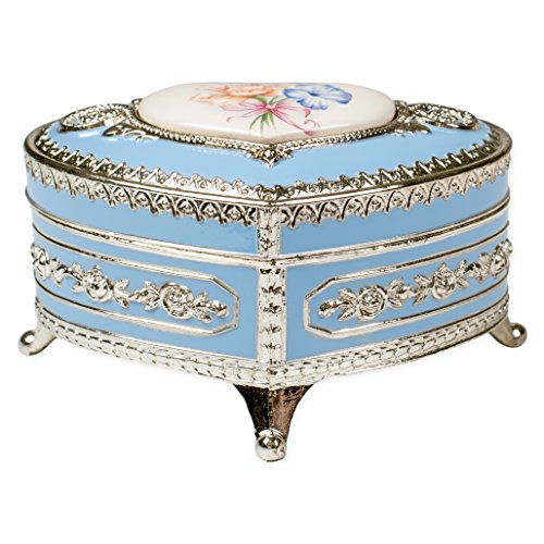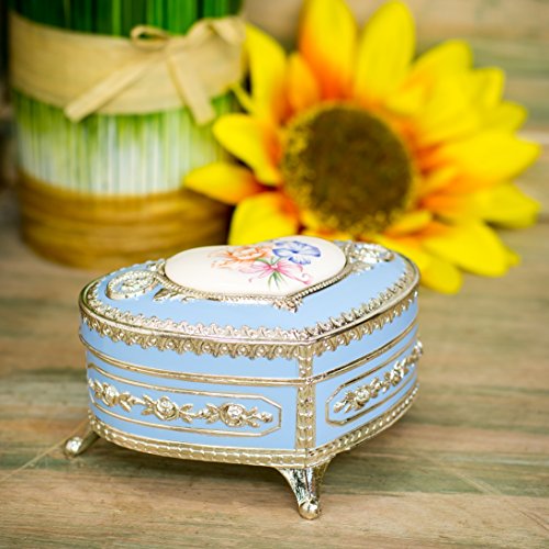 Blue Periwinkle Trumpet Flower Silver Tone Metal Music Box Plays Tune Unforgettable