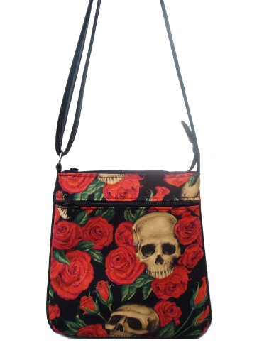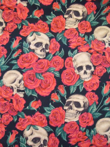 US HANDMADE FASHION RESTING IN RED ROSES SKELETON Rockabilly Gothic Halloween Pattern Cross Ove...