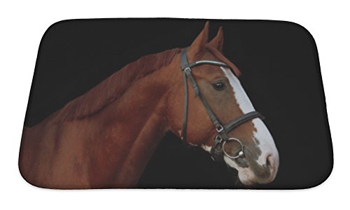 Gear New No Slip Microfiber Memory Foam Chestnut Stallion Portrait on Black Bath Rug Mat, 24" X 17"