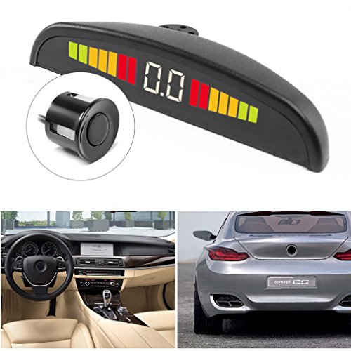 LESHP Intelligent LED Display Car Vehicle Reverse Backup Radar System Parking Sensor Kit with 4 Waterproof Parking Sensors for All Cars
