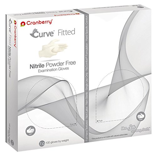 Cranberry CR3426 Curve Series 3420 Nitrile Powder Free Examination Glove, 7.0", Pro-White (Pack of 100)