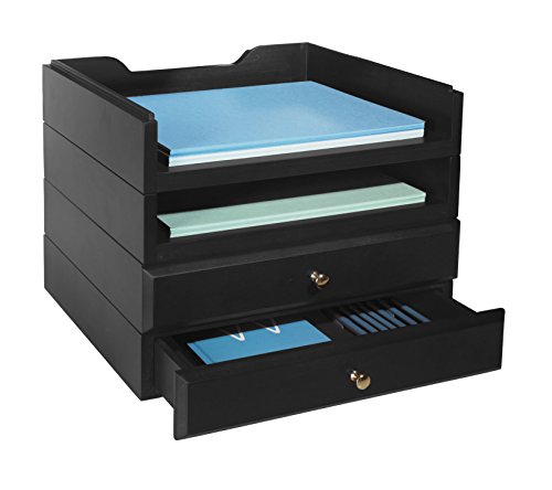 Bindertek Stacking Wood Desk Organizers, 2 Tray & 2 Drawer Kit, Black