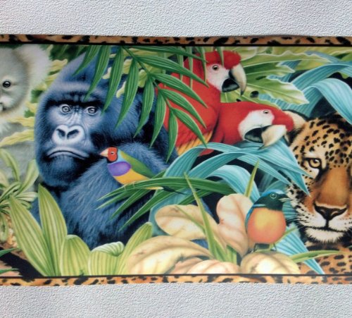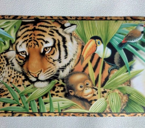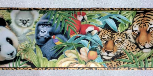 -. Feature : 15 Foot Long, Prepasted Wallpaper Border / Jungle Themed Wallpaper Border / Tigers, Pandas, Koalas, Jungle Animals