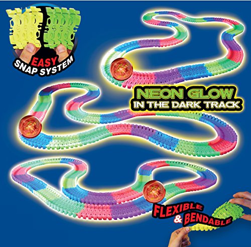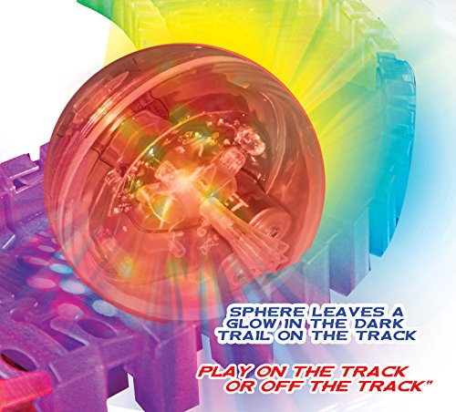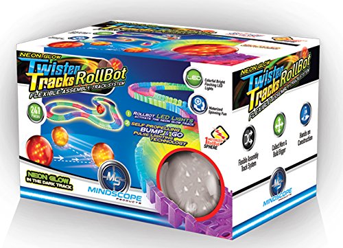 -. Binding : Toy -. Brand : Mindscope -. Feature : Includes 12'L (feet) of neon glow in the dark flexible track & motorized light up (multi-LED) sphere/ball. / Each RollBot contains 5 LED lights, one of which is a black light that leaves a glow in the dark trail on the flexible Twister Tracks! RollBot can be played on the track or off, contains bump & go technology. / Detachable and attachable track in five bright colors. Ages 3 and up. Even pets can enjoy/interact with the RollBot. / Compatible with Twister Tracks & Neo Tracks (not compatible with Twister Tracks 360 'loop track' only). / Each RollBot requires 2 AA batteries (not included). -. IsAdultProduct : 0 -. Label : Mindscope -. Manufacturer : Mindscope -. MPN : TTRB241 -. PackageQuantity : 1 -. PartNumber : TTRB241 -. ProductGroup : Toy -. ProductTypeName : TOYS_AND_GAMES -. Publisher : Mindscope -. Studio : Mindscope -. Title : Mindscope Twister Tracks Trax RollBot Neon Glow in the Dark 241 Piece Flexible Railway Set With Light Up LED Motorized Sphere/Ball & 12' Feet of Track